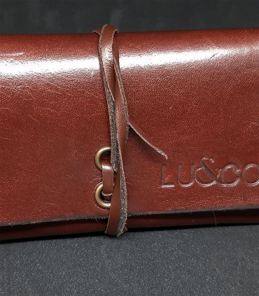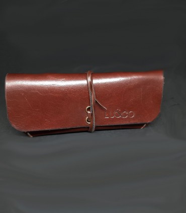 Funda para gafas con cierre, fabricada artesanalmente en piel de vacuno color chocolate.