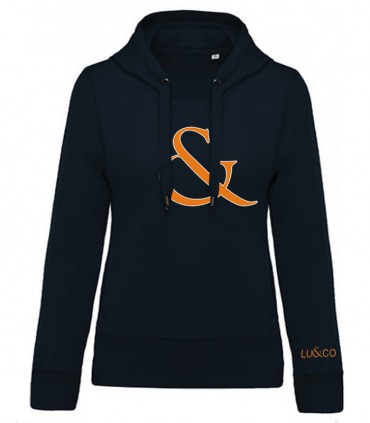Sudadera de algodón orgánico con capucha. Felpa perchada. Dos bolsillos con ribetes en la parte delantera. Capucha